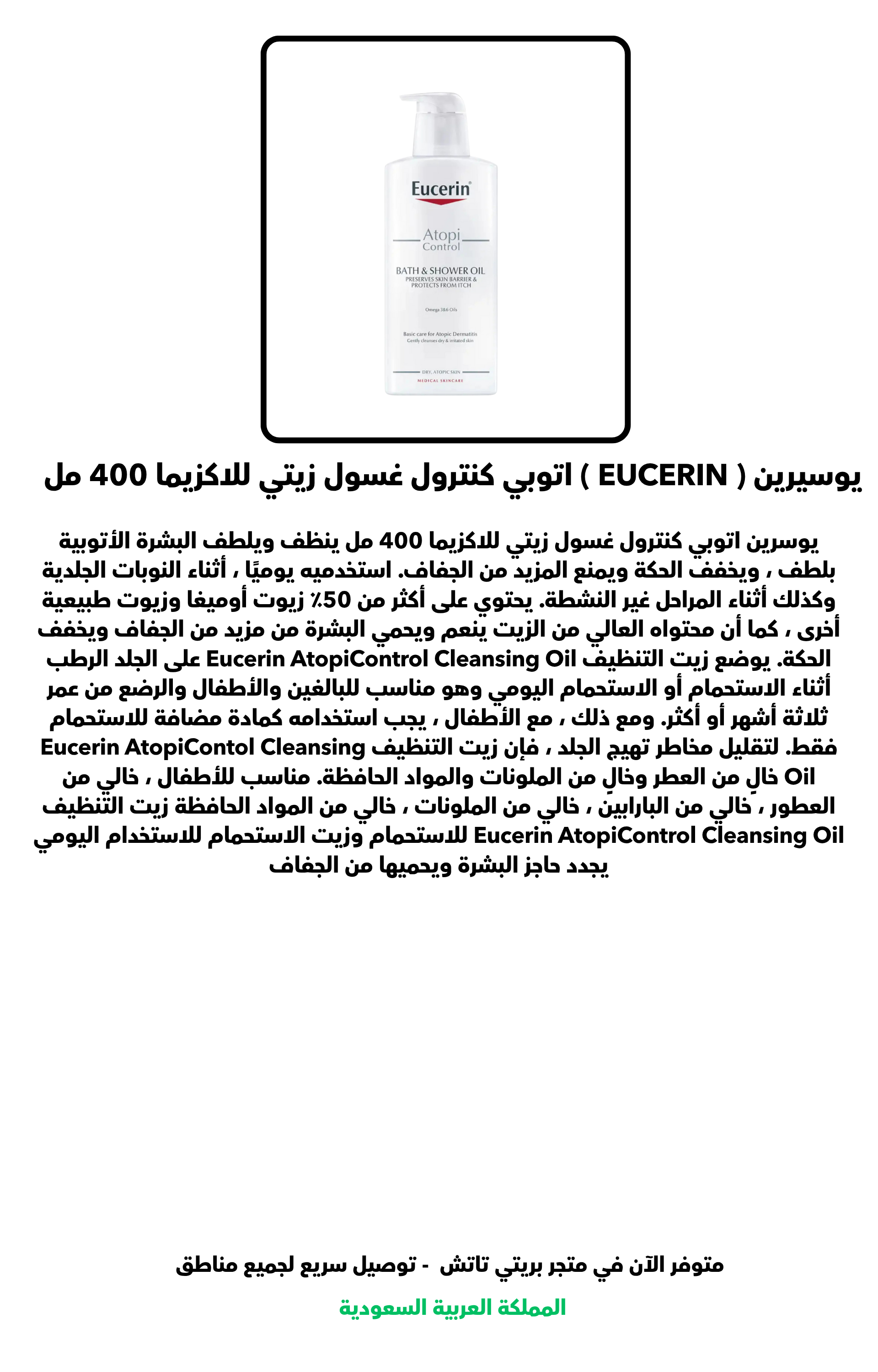 يوسيرين ( EUCERIN ) اتوبي كنترول غسول زيتي للاكزيما 400 مل